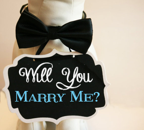 Replace your dog’s collar with a brand new one and add a little pendant with your question. There are many customizable ones available online. Here is a selection of adorable “Marry Me” dog collars.