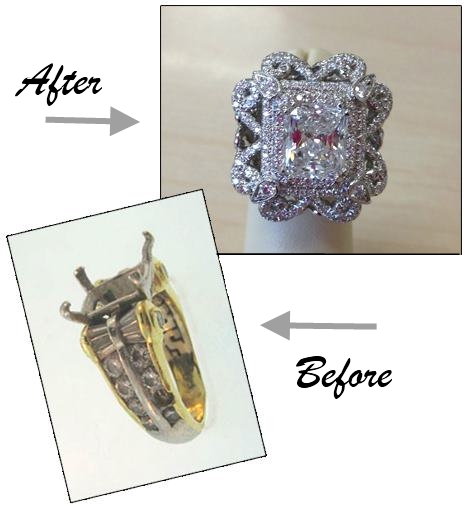- For sentimental reasons, if you wish a larger center diamond, you may wish to have your original diamonds incorporated into the new ring as side diamonds. You will likely need to purchase additional diamonds of similar quality and color in this case.