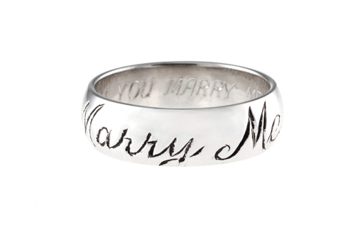 Emotions of passion emerge at the moment a couple becomes engaged. Now, that emotion, in part, can be captured with the written word on an engagement ring or wedding band.