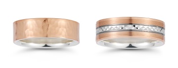 Men also want their jewelry to feel unique and creative and Novell Design Studio gets that. Men wedding bands are not plain and simple anymore. The collection offers many metal options in attractive colors. Bright yellow gold, fashionable red gold and many shades of white metals. Once your man has picked a color, he will need to pick a finish. Hammered, brushed, polished… there are many options. It’s also all about the details. Symbols, black or white diamonds, grooves, lines, you chose. How fun and NOT boring, helping create your man’s promise or wedding band. Here are some highlights of the most creative pieces.
