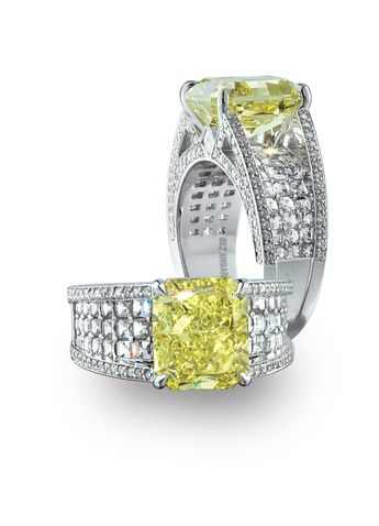 Bez Ambar new 2012 engagement rings collection features amazing color center stones with elaborate pave settings. If you favor white diamonds, you are on for a treat. Bez Ambar offers Blaze cut diamonds. This special cut in any size is extremely sparkly and shiny from every angle. The pieces we selected are couture pieces since we are virtually shopping for inspiration . Tell us what you think.