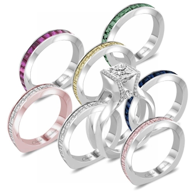 Claude Thibaudeau new collection features very interesting sets. The Cathédrale Collection (below) features a range of interchangeable bands which can be inserted underneath the ring, allowing multiple combinations with bands set with diamonds or colored stones and also different metal color options.