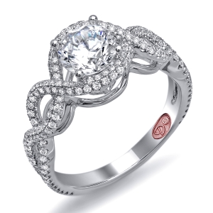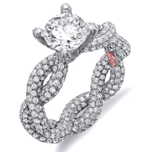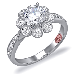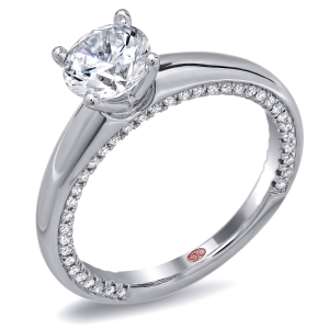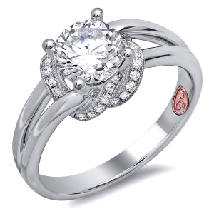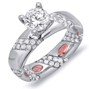 Demarco new engagement ring collection features solitaires center stone with very creative settings. We like their use of inside out rows of diamonds and all the interesting twists. The signature rose gold logo is also very cute.