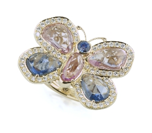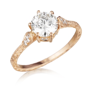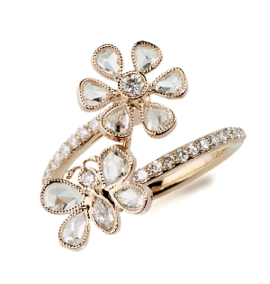 The John Apel engagement ring collection features settings with amazing organic details. From rose gold to platinum, these rings are full of vibrant colors. We also love the flower and butterfly rings from their cocktail ring collection. They could be great alternative engagement rings.