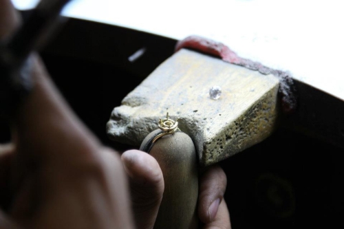 What is amazing about this ring is that it can’t be cast. Though many manufacturers and designers promote the fact that their rings are hand made, it’s not always true. Many just end their ring making process with handmade engravings , polishing, hammering etc… They usually start with a cast of the basic shape of the ring. The Abbraccio by Danhov can’t be cast or it would break. Just like swords can’t be cast without breaking. Take a look at the different steps it take to make this ring and why if you like a ring style, you should not get something that “looks like it” but always the real deal.