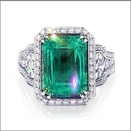 A huge and mesmerizing emerald ring in a pave setting with a two row shank.