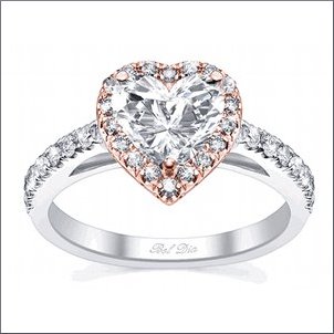This ring is an optical illusion. It’s a round diamond but the setting makes it look heart-shaped.
