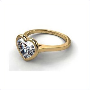 We love the practical bezel set design of this yellow gold heart-shaped engagement ring.