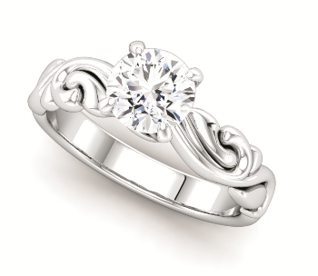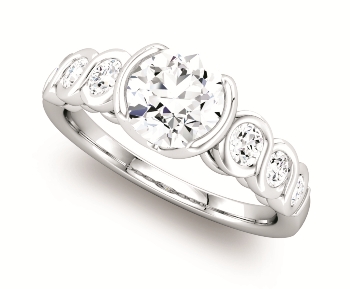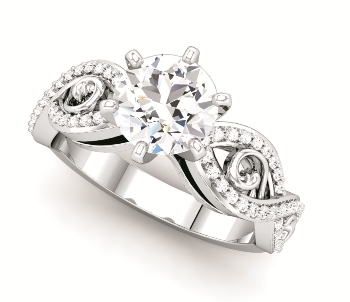 Stuller sculptural-inspired engagement ring collection features white gold settings with curvy details and some rose gold accents. If you are looking for a classic look with a modern twist, these rings are perfect. The prices without the center stone range from $1,400 to $6,000.
