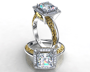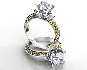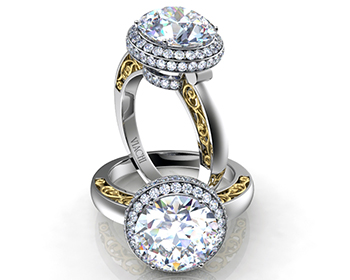Viachi engagement rings come in many shapes. But one thing is certain, each of these pieces features unique intricate details. We love the bi-color look and the and the different setting options for the center stone.