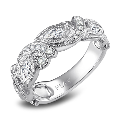 Editor’s Choice: Parade Designs platinum milligrain-etched art deco inspired wedding band with marquise-shaped diamonds $5,225