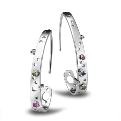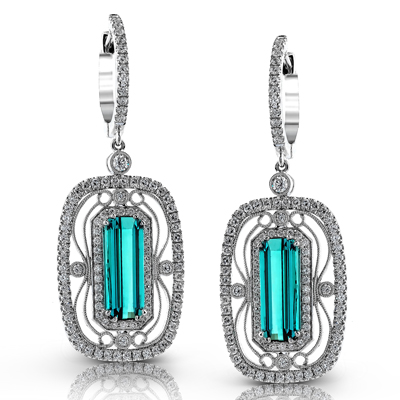 Editor’s Choice: Simon G platinum earring with round white diamonds and emerald cut green tourmaline