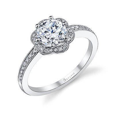 Buyer’s Choice: Sylvie Collection platinum and diamond floral halo engagement ring $2170 ("The Best in Show")
