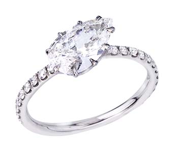 Jade Trau’s 2013 engagement ring collection features clean lines with a contemporary look. She selects each diamond herself and favorites round edges shapes such as pears and marquises. Check out our selection: