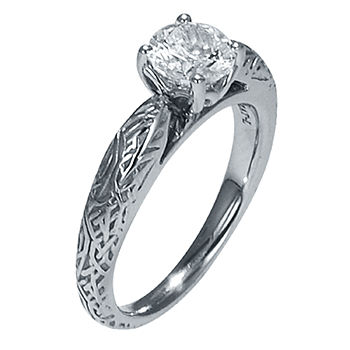 The Lieberfarb 2013 platinum engagement ring collection features interesting nature inspired details. Designer Mark Schonwetter and his daughter Ann Schonwetter Arnold are constantly sourcing for new styles and motifs for their engagement and bridal jewelry. When he saw a bird’s nest, he thought a design like that, representing a home for birds (who incidentally mate for life) and use their nest to lay their eggs have them hatch and grow into adults would be the perfect design element for a ring. We love the wedding band bellow that would make the perfect man-gagement ring.