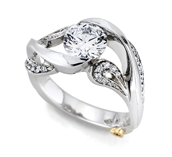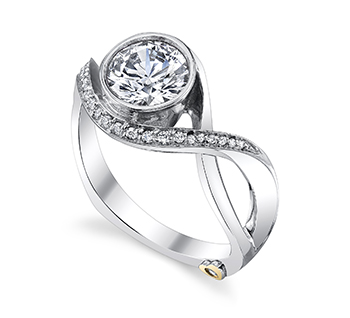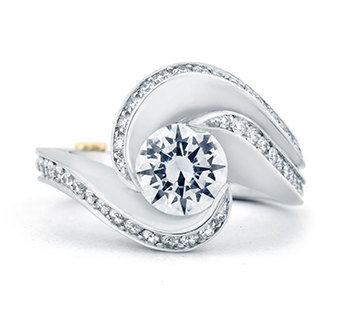 The Mark Schneider engagement ring collection are non-traditional and made to flow beautifully with the curves of a woman’s hand. Mark’s jewelry is very fluid and innovative. We love his new take on the halo rings, which feature curved pavé instead of straight pavé. Though very practical and usually set close to the finger, each of Mark Schneider’s engagement ring is a unique piece of art.