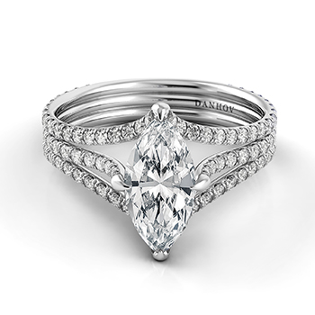 Danhov’s Eleganza engagement ring collection features modern shapes, lots of curves and great side details. Each ring created by Danhov is either handcrafted or hand-assembled by the most skilled jewelers at its offices in Los Angeles, California. We love the marquise above with the elegant split shank and the impressive elliptical ring bellow.