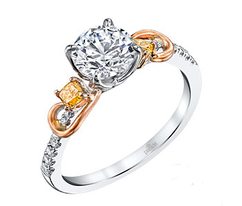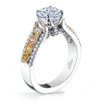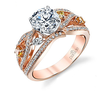 Color engagement rings are the hottest trend. Offering a playful mixture of natural fancy colored diamonds in artful designs, Parade Design‘s Reverie bridal features a full spectrum of colors including rich golden tones, deep amber and flashes of champagne enhanced by a medley of shapes creating a softly dramatic and versatile look. Each diamond is hand-selected and meticulously arranged resulting in the slightly distinct appearance of every piece. We love the warm hues of these romantic and dainty engagement rings!
