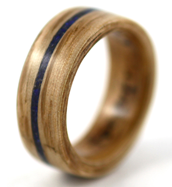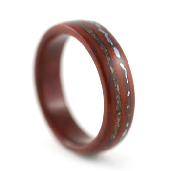 There is so much history hidden is these wooden rings! Simply Woods Rings sometimes uses recycled wood from precious objects such as the neck of a violin that had its beginnings filling orchestra halls with sounds that soothed the soul, the wood from the baseball bat of a mother’s son and much more, creating deeply personal pieces of jewelry. The choice of wood is impressive, from light walnut to dark and red Juniper heart wood and even ancient oak from Ireland, all from recycled sources. Choosing wood for your wedding bands gives you the opportunity to include very personal meaning deep into the material of the rings itself. The collection starts at $350.