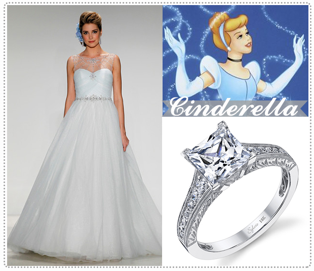 Dreaming of a Disney Fairy Tale wedding? Inspired by your favorite Disney princesses, the Alfred Angelo Disney Fairy Tales Weddings collection features beautiful and colorful gowns with lots of sparkles. We’ve found the perfect engagement rings to match the styles and personalities of these whimsy characters.