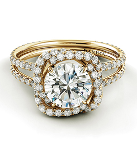 We love this stunning split shank yellow gold engagement ring by Kirk Kara.