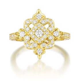 This elegant vintage inspired engagement ring by Penny Preville is a real beauty in yellow gold!